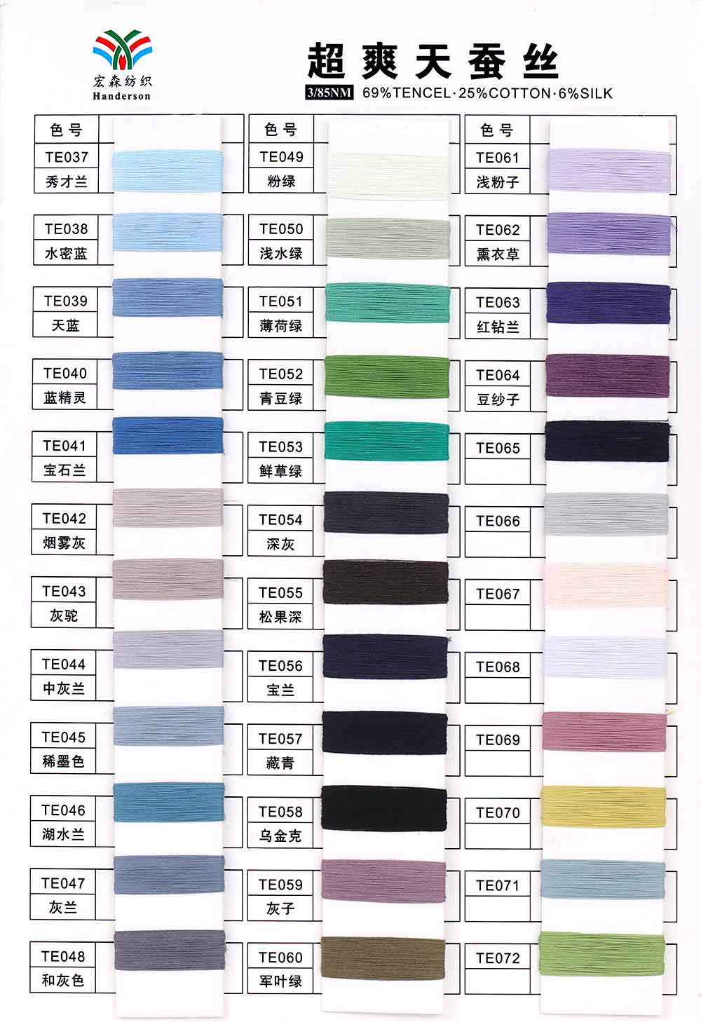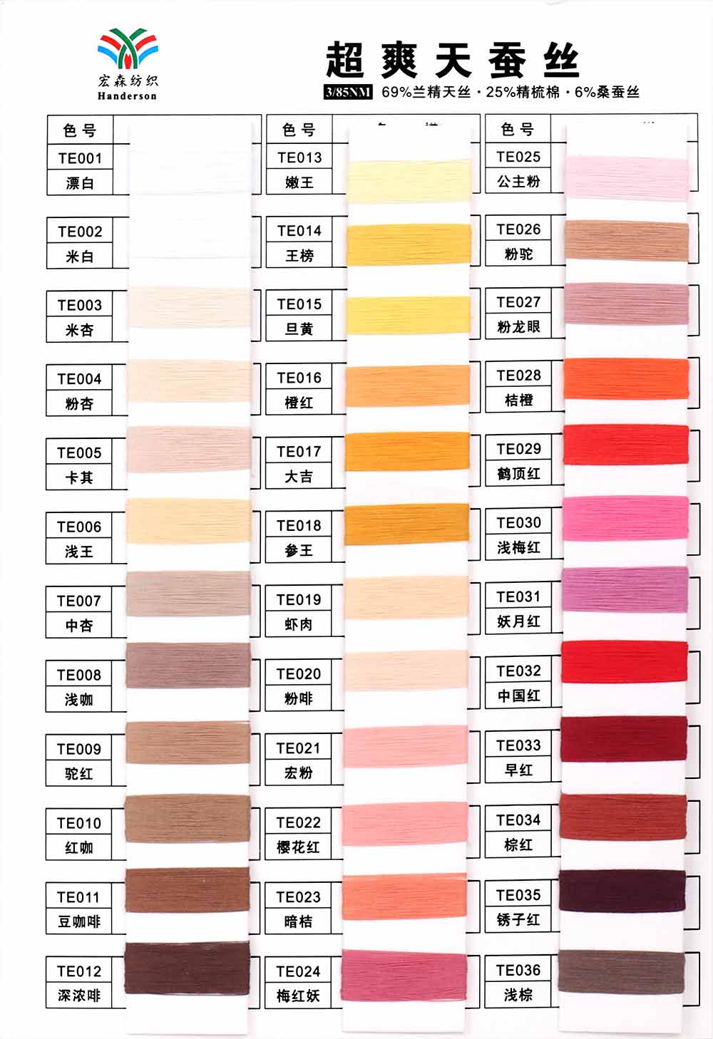 69%兰精天丝Tencel 25%精梳棉Combed cotton 6%桑蚕丝Silk