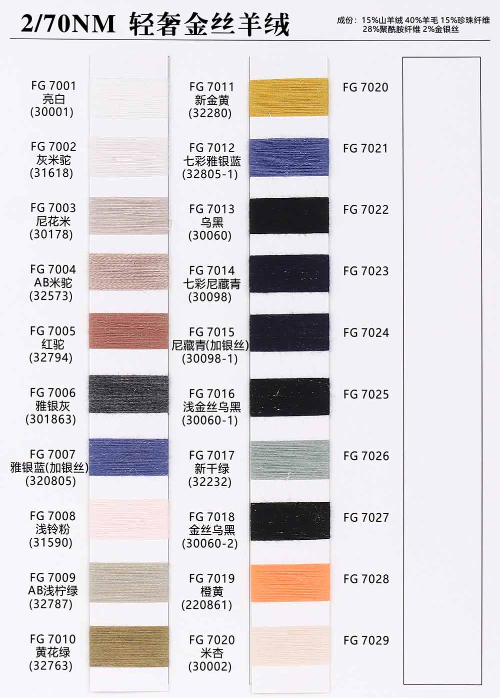 Name:2/70NM 轻奢金丝羊绒 20