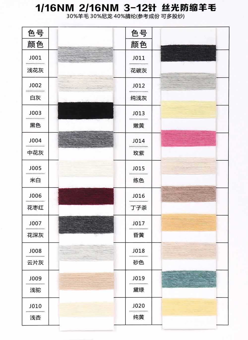 Name:丝光防缩羊毛 30