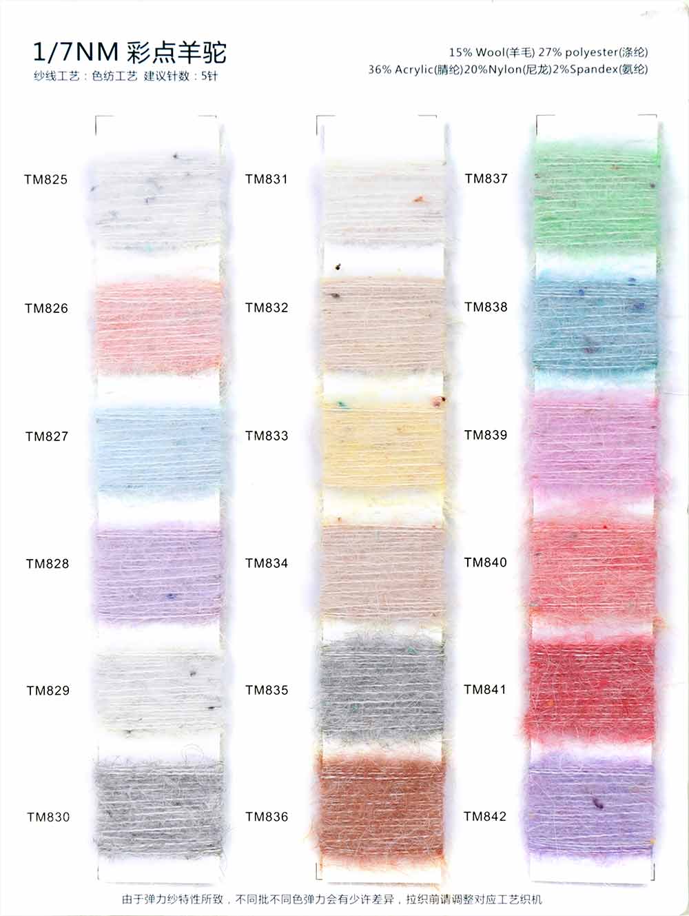 15%羊毛Wool 27%涤纶Polyester 36%腈纶Acrylic 20%尼龙Nylon 2%氨纶Spandex